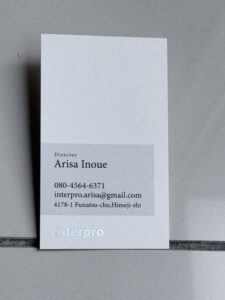 ディレクター井上の名刺が完成しました。パール感と銀箔がいいですね!